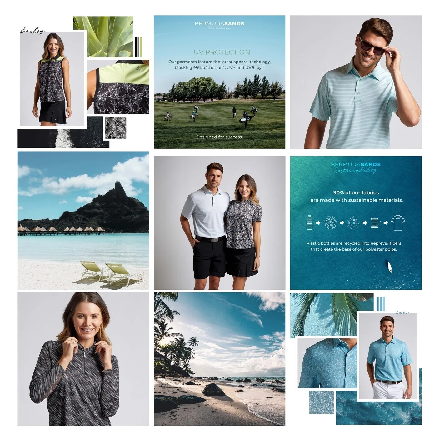 Bermuda Sands Apparel is a sustainable golf apparel company, focusing mainly on the B2B market, targeting resorts and golf clubs. Work done at Bermuda Sands Apparel included relaunching their social media platforms by planning and executing content calendars, design, and photography. The focus of most work was to bring in a new customer base targeting B2C opportunities. I also designed and editorial spreads and magazine advertisements, as well as banners and promotional signage. I brainstormed and pitched new concepts and campaigns for advertising and marketing.